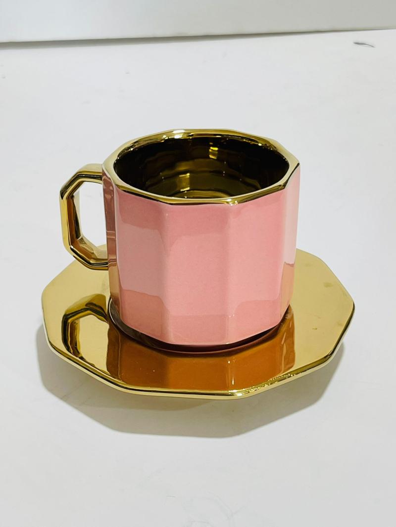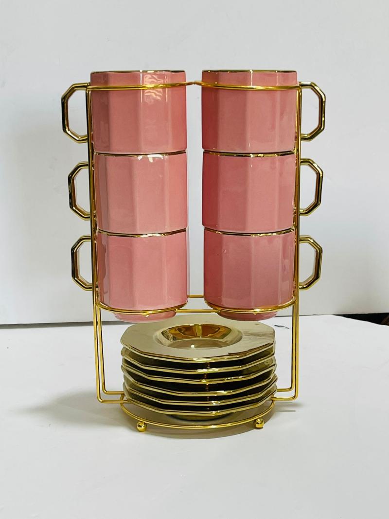 طقم كافيه زهري وابيض كبير ستاند 12 قطعه CYT100