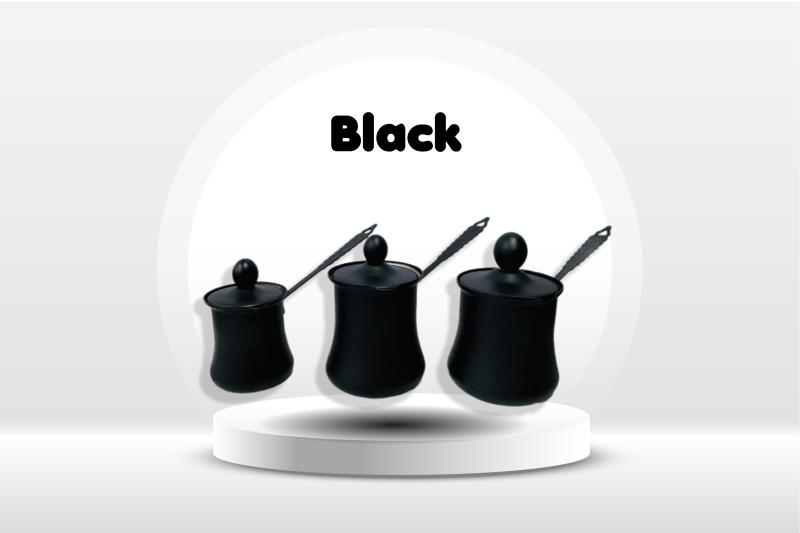 طقم غلايات قهوة ثلاثي فخم ثقيل اسود بيد مع غطاء SF-203