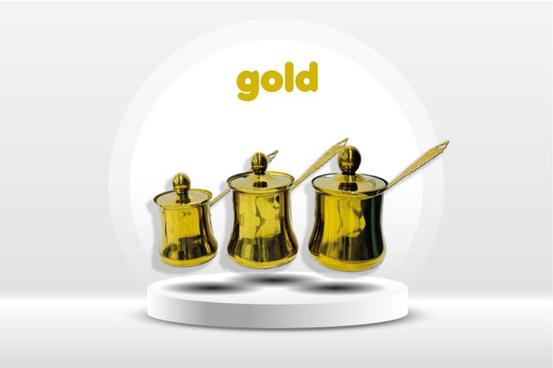 طقم غلايات قهوة ثلاثي فخم ثقيل اذهبي بيد مع غطاء SF-201