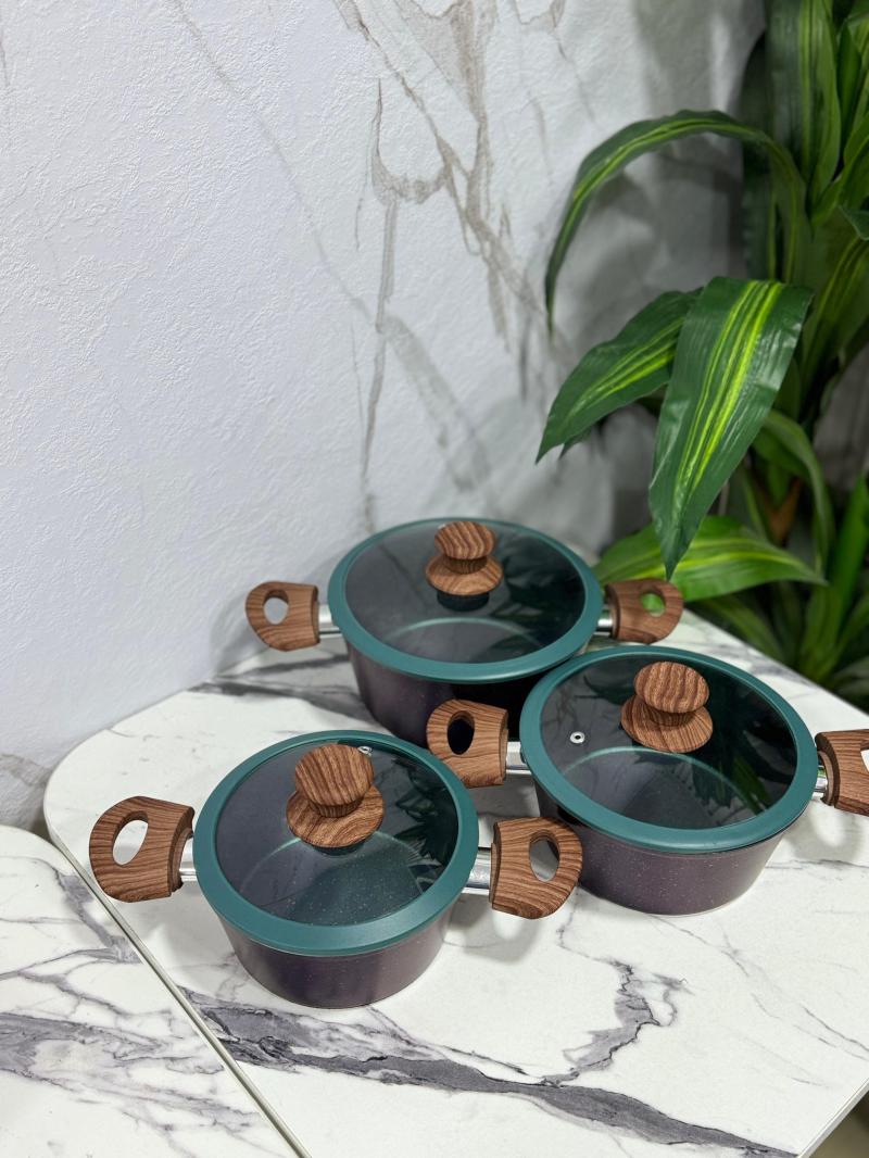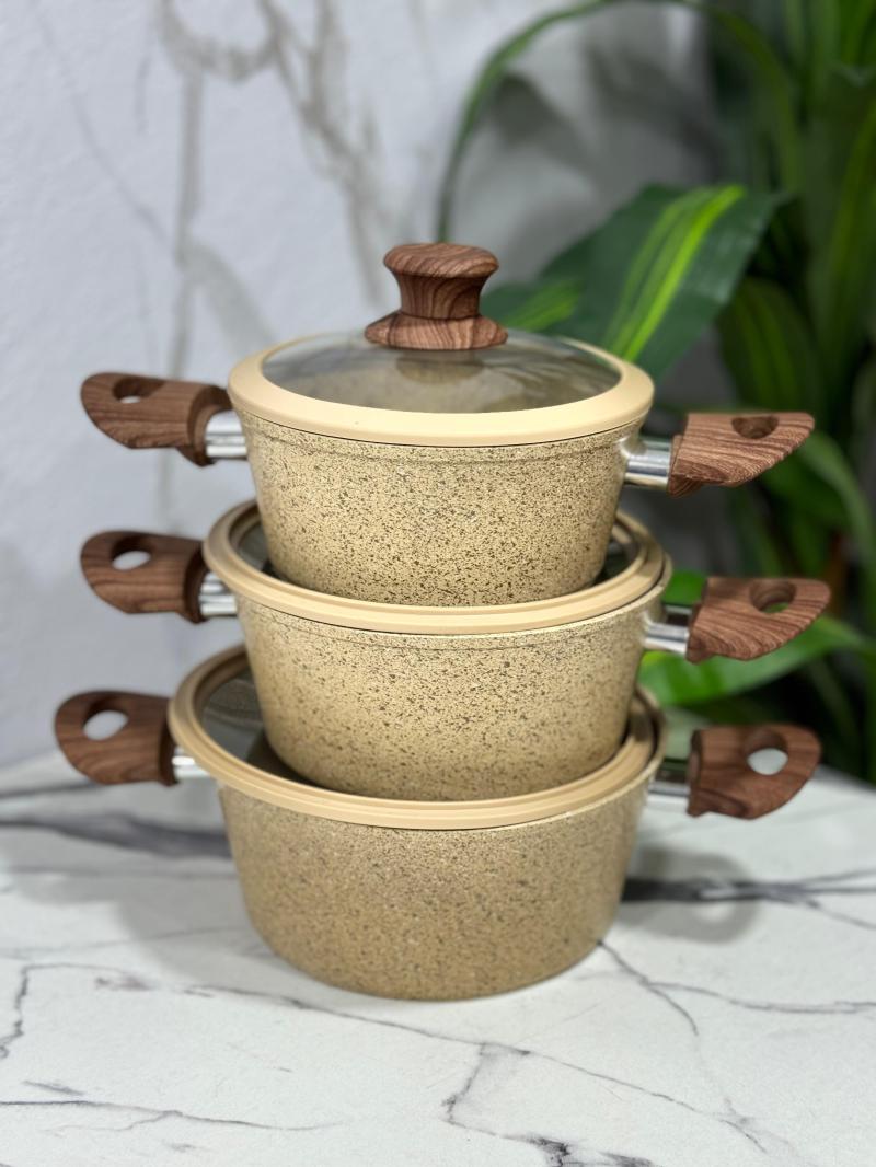 طقم طناجر 6 قطع جرانيت ثقيل 18+20+22 سم DARK A6101