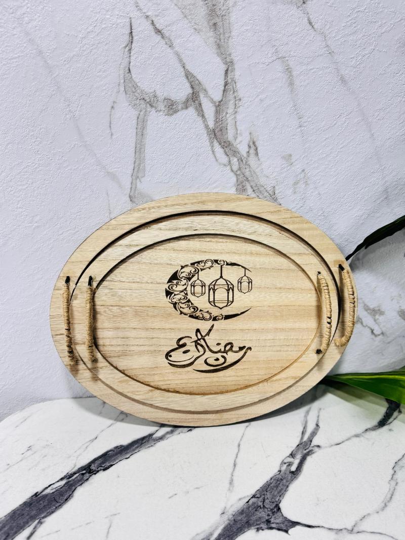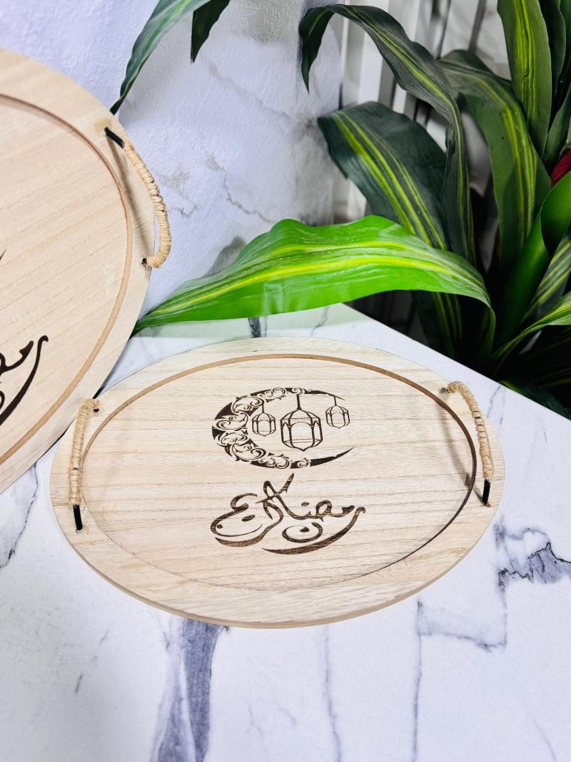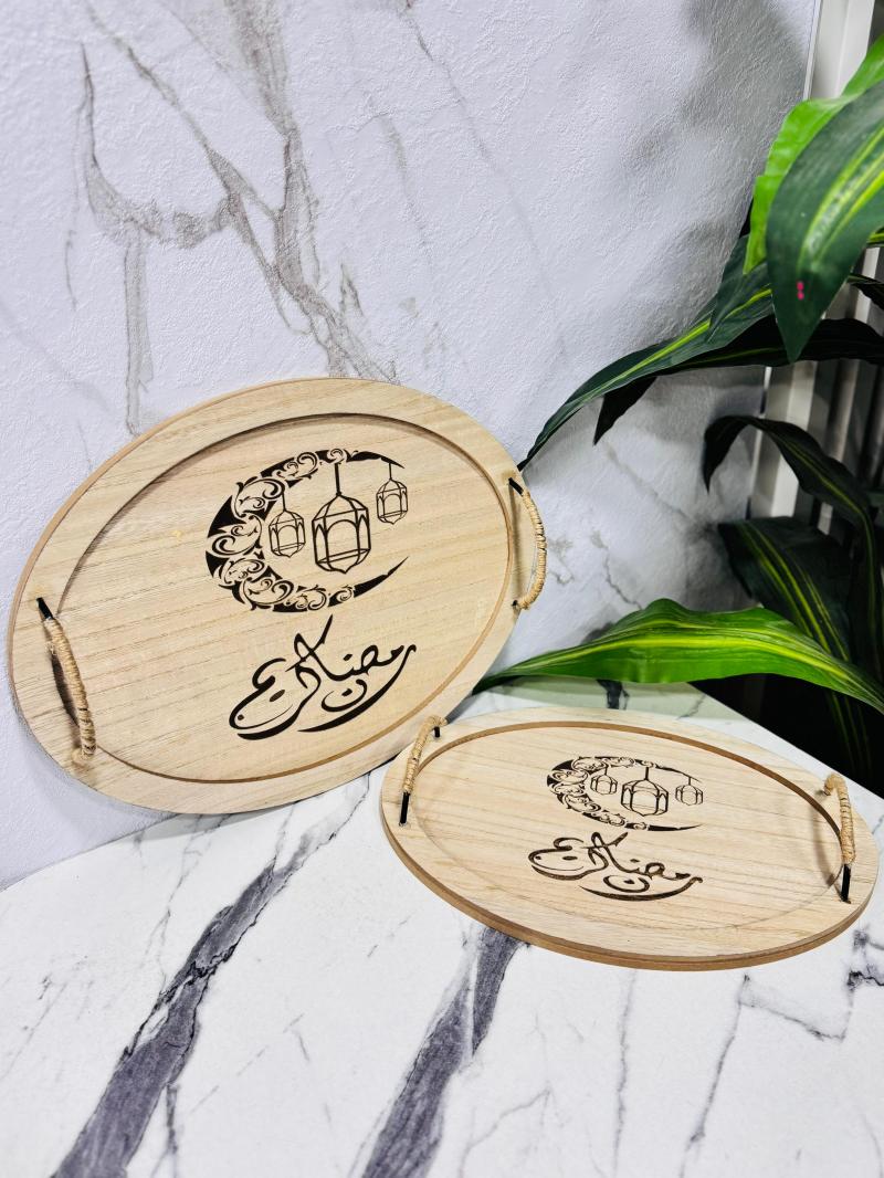 صواني رمضان خشبي بيضاوي ثقيل 2 صينيه 3-9