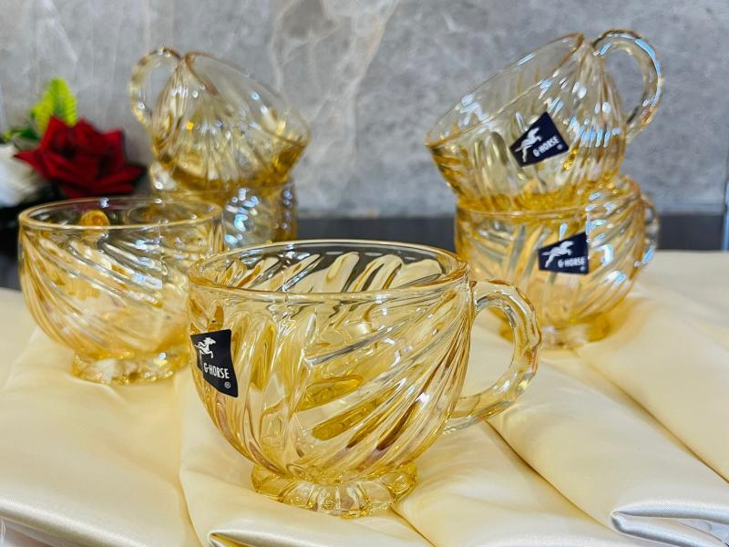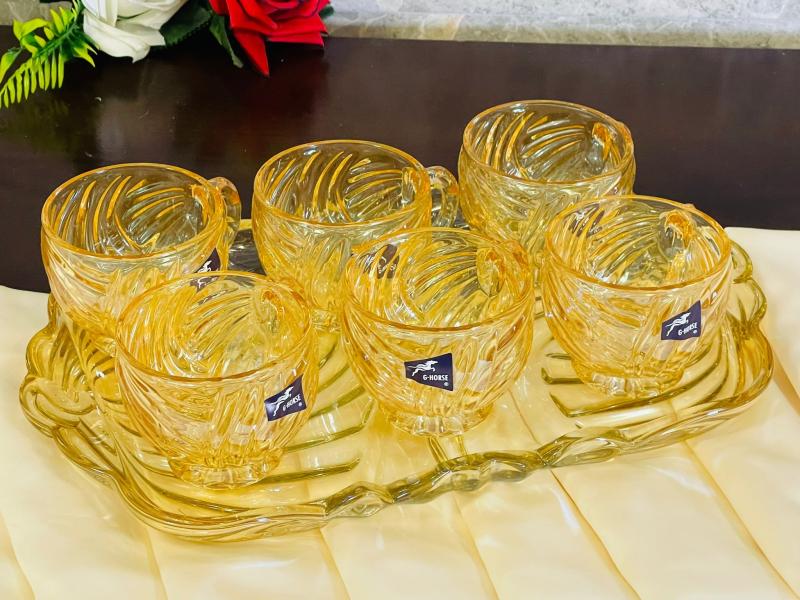 طقم صينيه زجاج +6 كاسات ذهبي 01-6T
