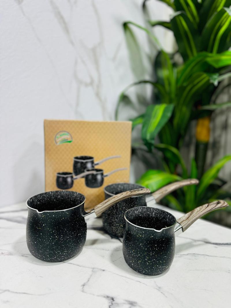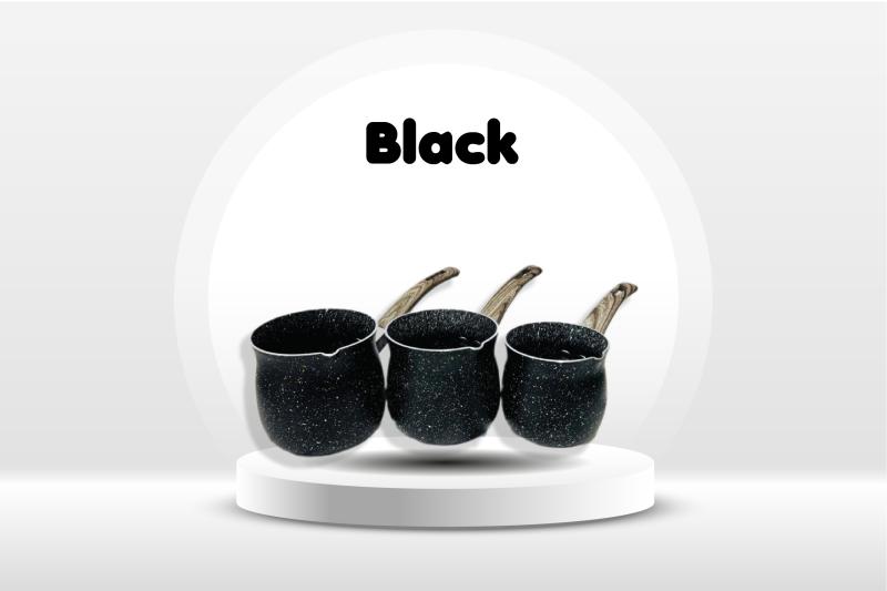 طقم غلايات قهوة جرانيت 9+10+11 سم 3 قطع اسود BLACK/WHITE/BROWN